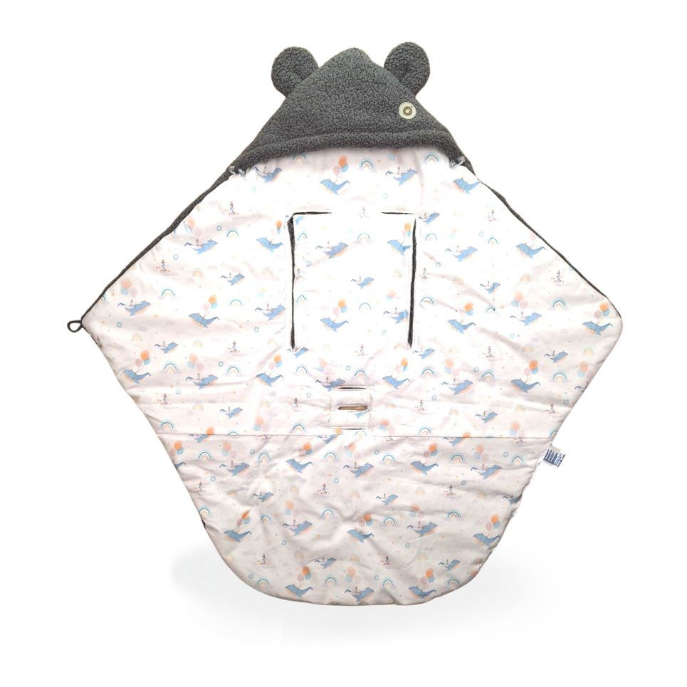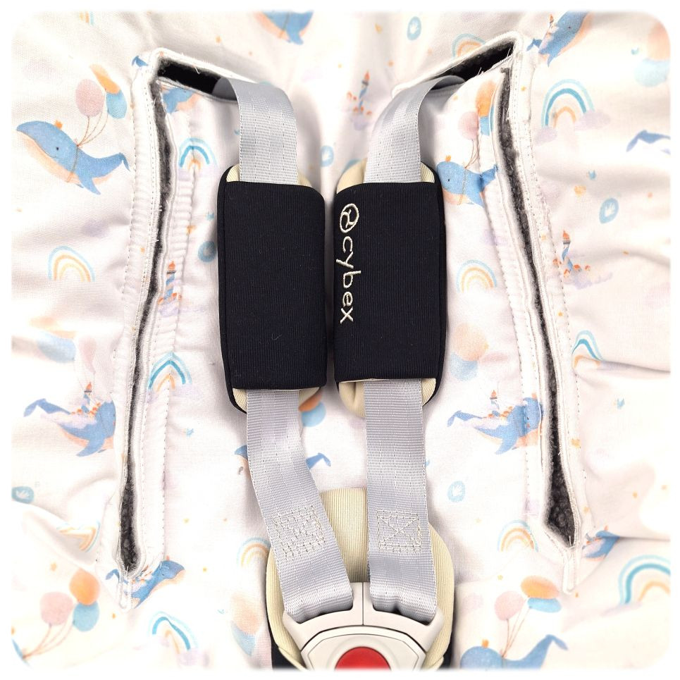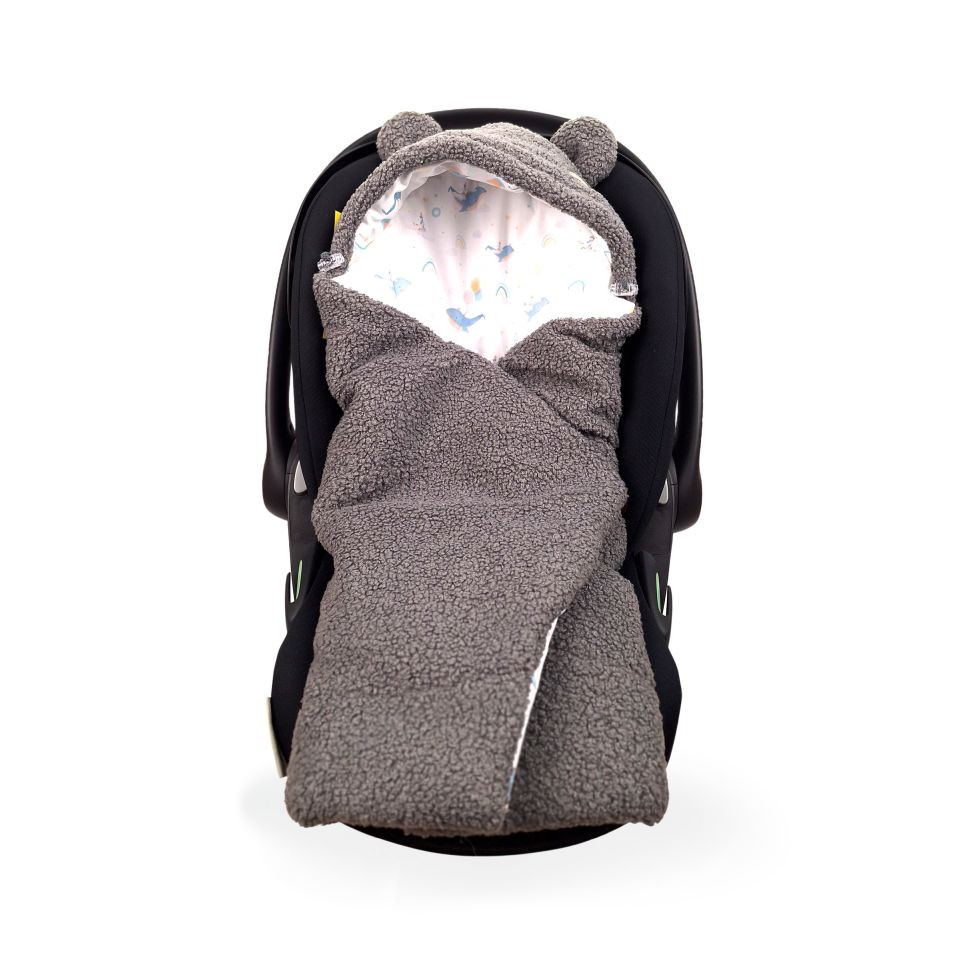 The great advantage is that the car seat wrap does not fall off like a regular blanket and perfectly covers the whole baby.
